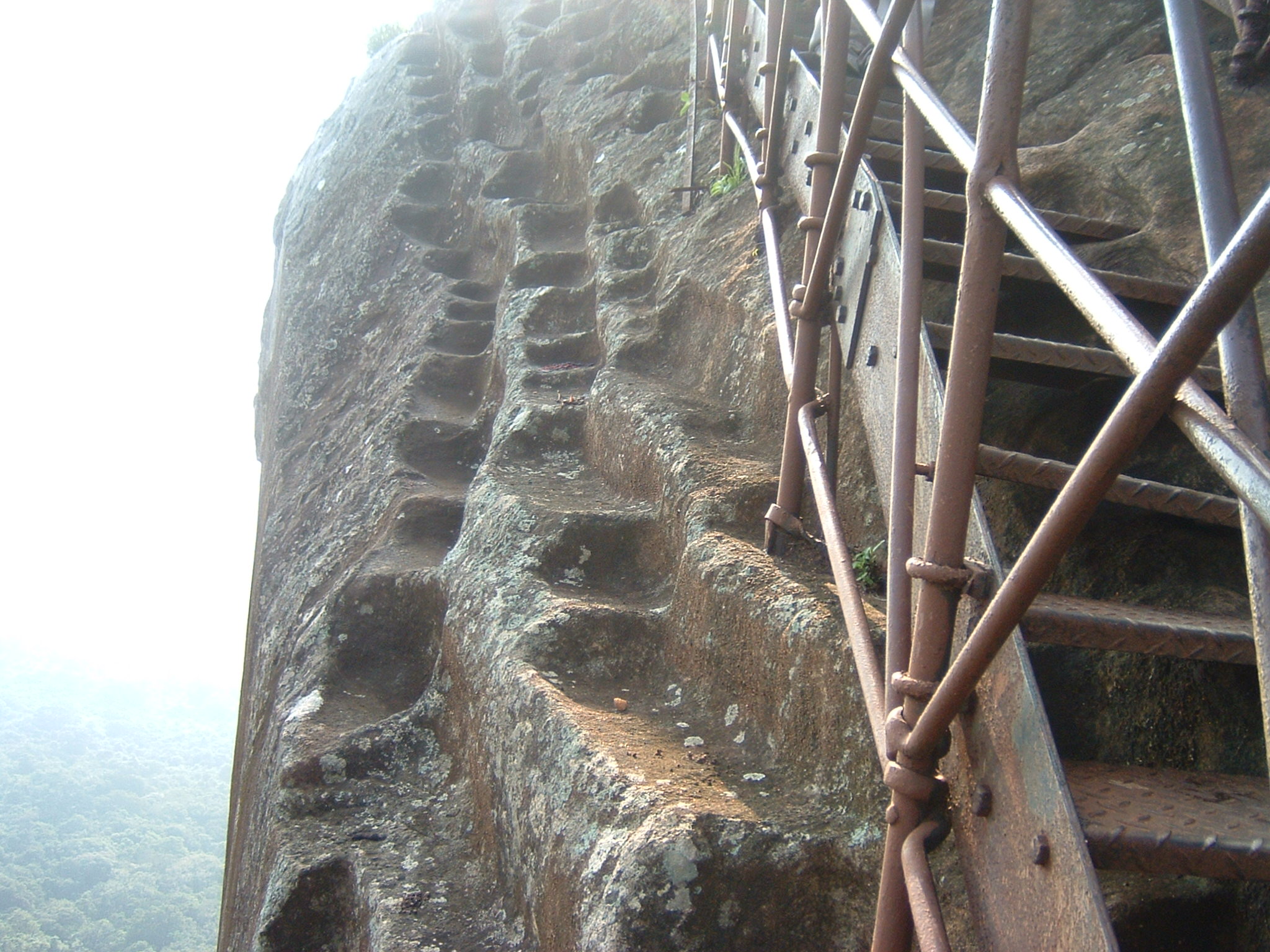 In the old days, pilgrims ascended the mountain by stepping upon bare rock surface and clinging on to chains fitted to iron posts drilled into the rocky floor. The most dangerous part of the climb was the point known as 'Mahagiridambe' where the pilgrims exposed to heavy wind were at risk of being carried away. John Still, in his book Jungle Tide, says how once a batch of pilgrims, fell into the precipice below when the railing they were holding on to broke loose, probably due to weight.