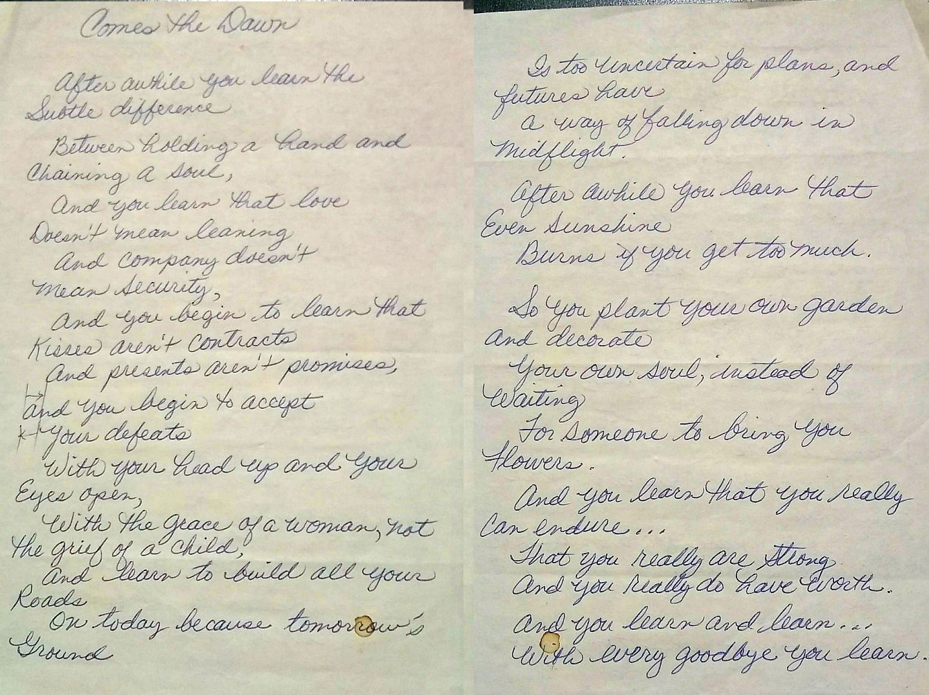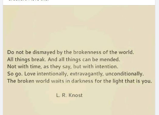 TO THOSE WHO HAVE NEVER LIVED THROUGH ITS TURNINGS OR WALKED ITS ROCKY PATH, OUR WILLINGNESS TO GIVE OUR HEARTS WITH FULL KNOWLEDGE THAT THEY WILL BE BROKEN SEEMS INCOMPREHENSIBLE.