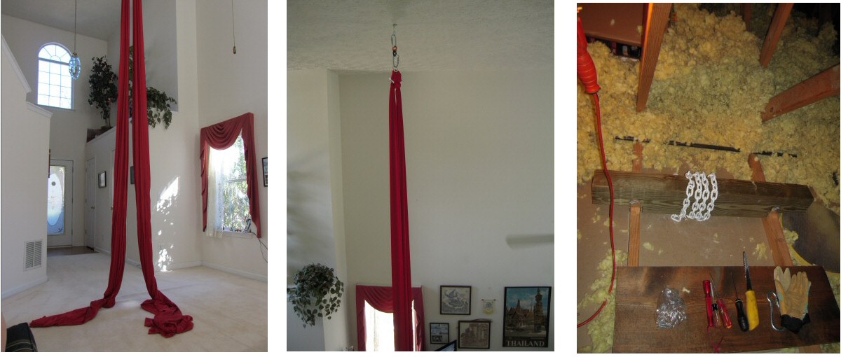 Installing the Silk - I have a tall ceiling! I put a 4 x 6 beam in the attic with 1700 pound test chain.