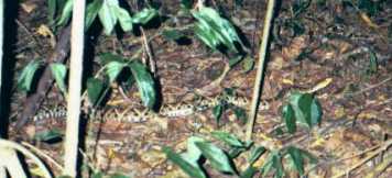 Ready with our head lamps for our night safari. A 2 hour walk through the very dark jungle spotting animals....... | A 5.5 foot very very poisonous yellow-jawed pit vipor snake. You're dead in 25 steps. |