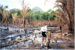 Burned area near the resort. Slow-moving forest fires were burning out of control all over Central America. | Slash & burn area. Govt encourages "enhancing" the land, so the local burn the forest and plant a pineapple plant. |