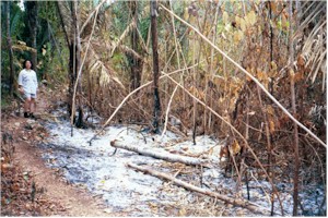 On our walk with the inner tubes, we walked through burned areas of the forest, and slash&burn areas. So sad.
