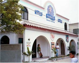 The Sunbreeze hotel across from the landing strip where we stayed in San Pedro. | The pool at the hotel.
