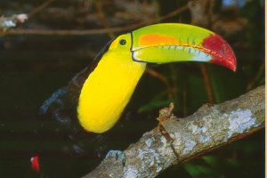 A lizard on a log | A keel-billed toucan. |
