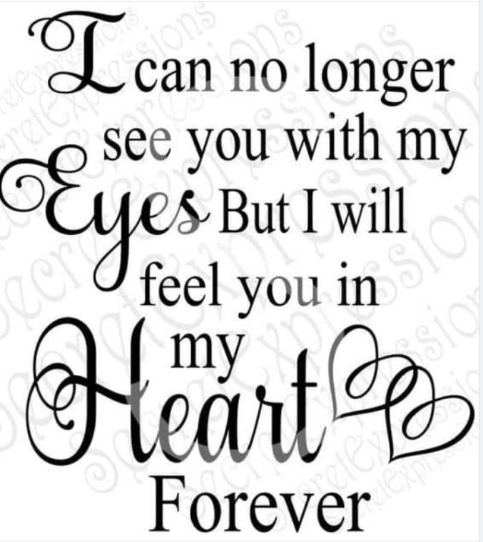 I can no longer see you withI can no longer see you with my eyes But I will feel you in my heart Forever