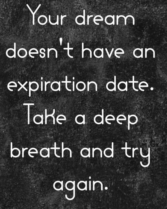 Your dream doesn't have an expiration date. Take a deep breath and try again... and again, an again. You've got everything it takes to have the life of your dreams.