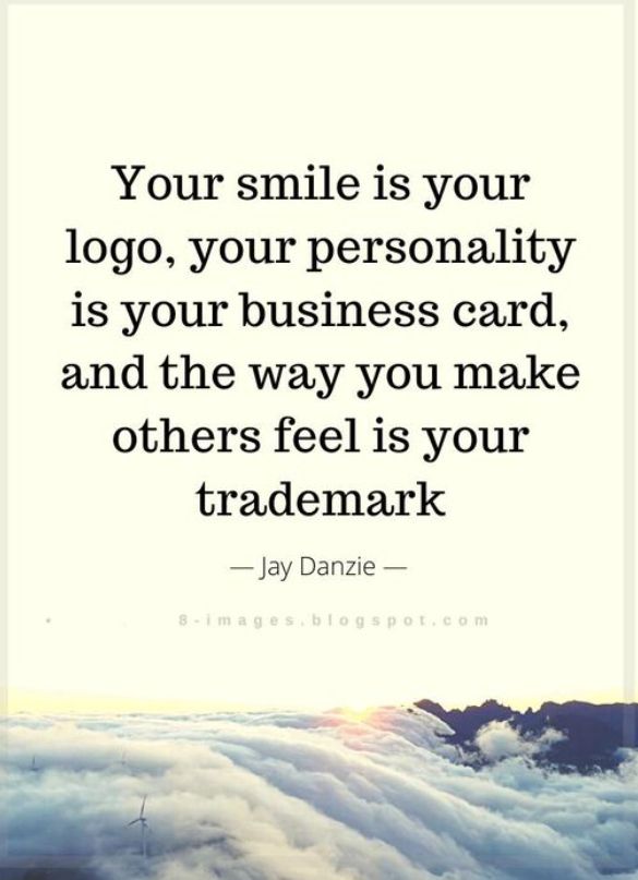 Your smile is your logo, your personality is your business card, and the way you make others feel is your trademark â€â€Jay Danzie â€â€